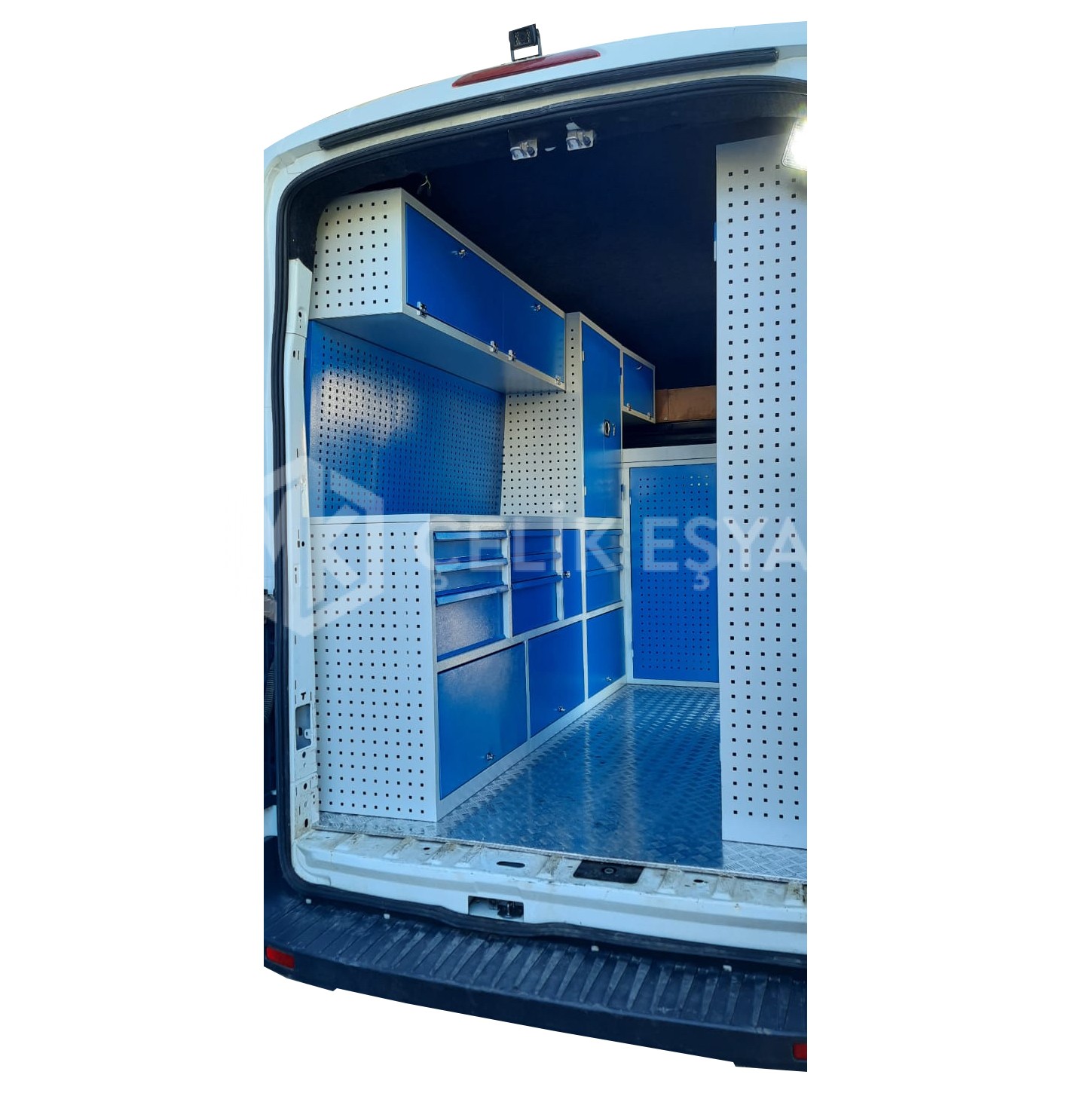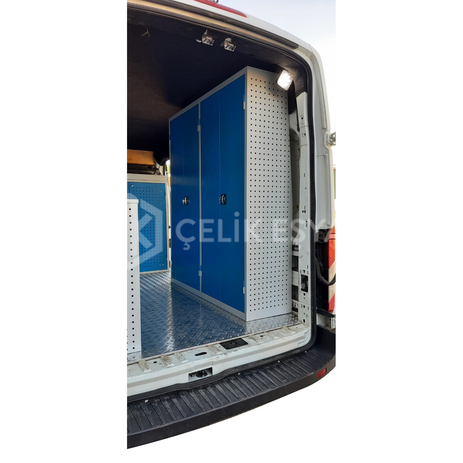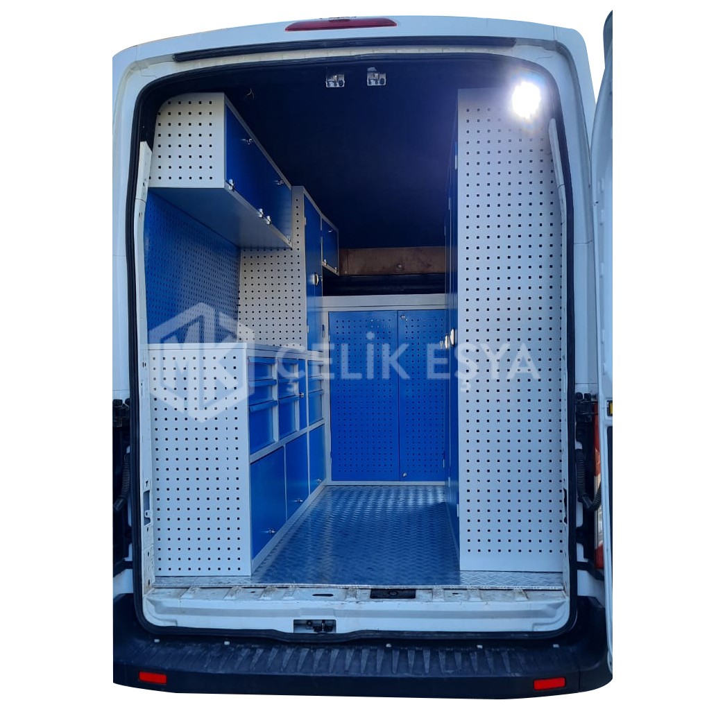 Araç içi raf ve dolap sistemlerimiz, birçok farklı sektörde faaliyet gösteren firmaların ihtiyaçlarını göz önünde bulundurarak tasarlanıp üretilmektedir. Özellikle yerinde servis hizmeti veren firmaların bakım aracı ihtiyaçlarını karşılamaktadır. Bu tarz servis ve bakım araçlarının ihtiyaç duyduğu alet ve edevatların derli toplu muhafazası sağlanır. Ayrıca araç içinin fonksiyonel kullanımının yanında görsel olarak da zenginleştirir.
