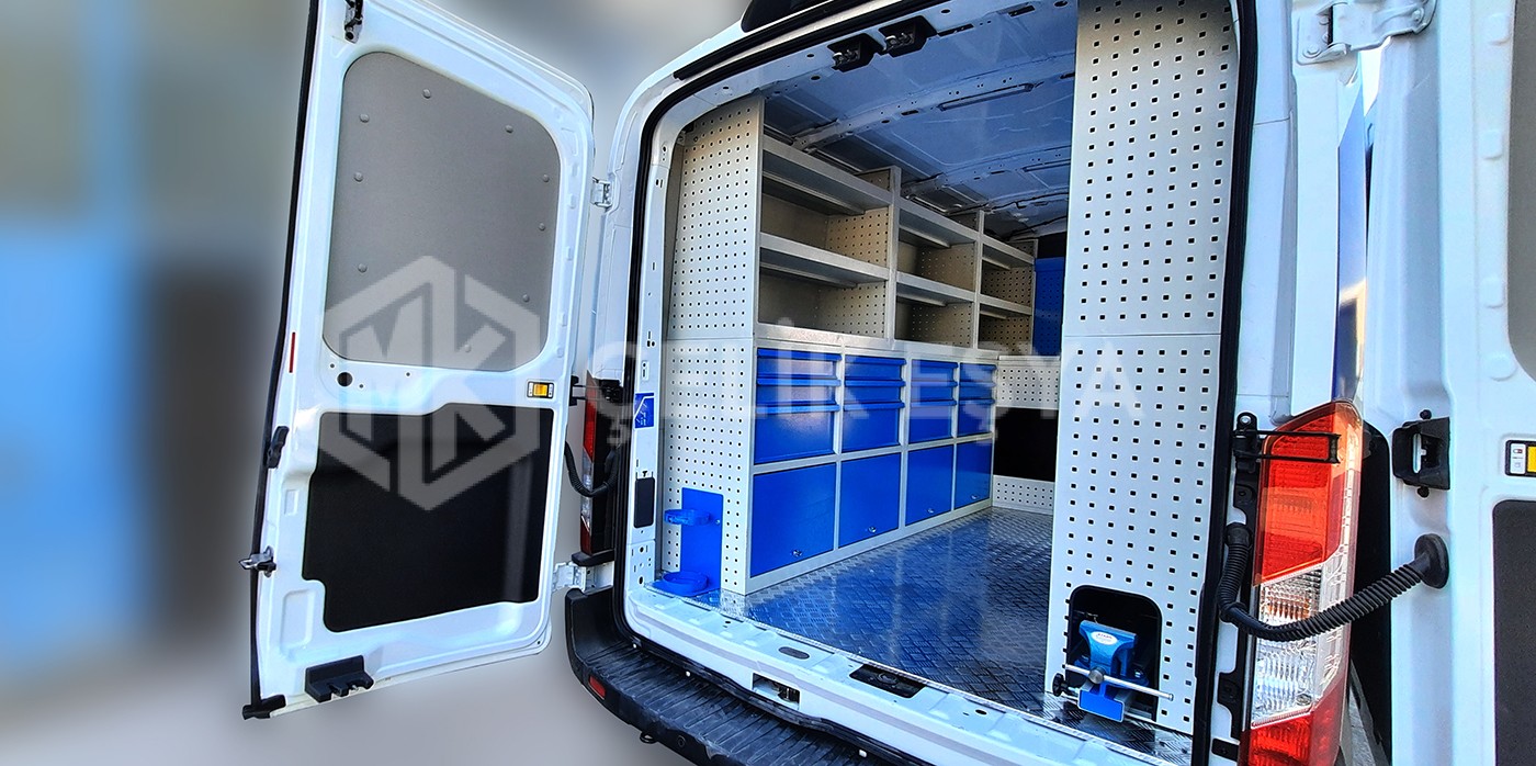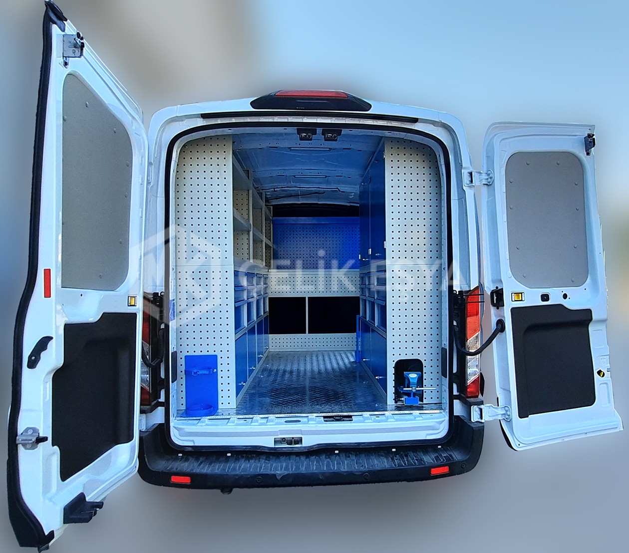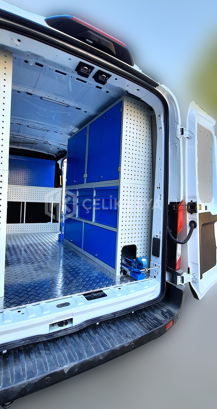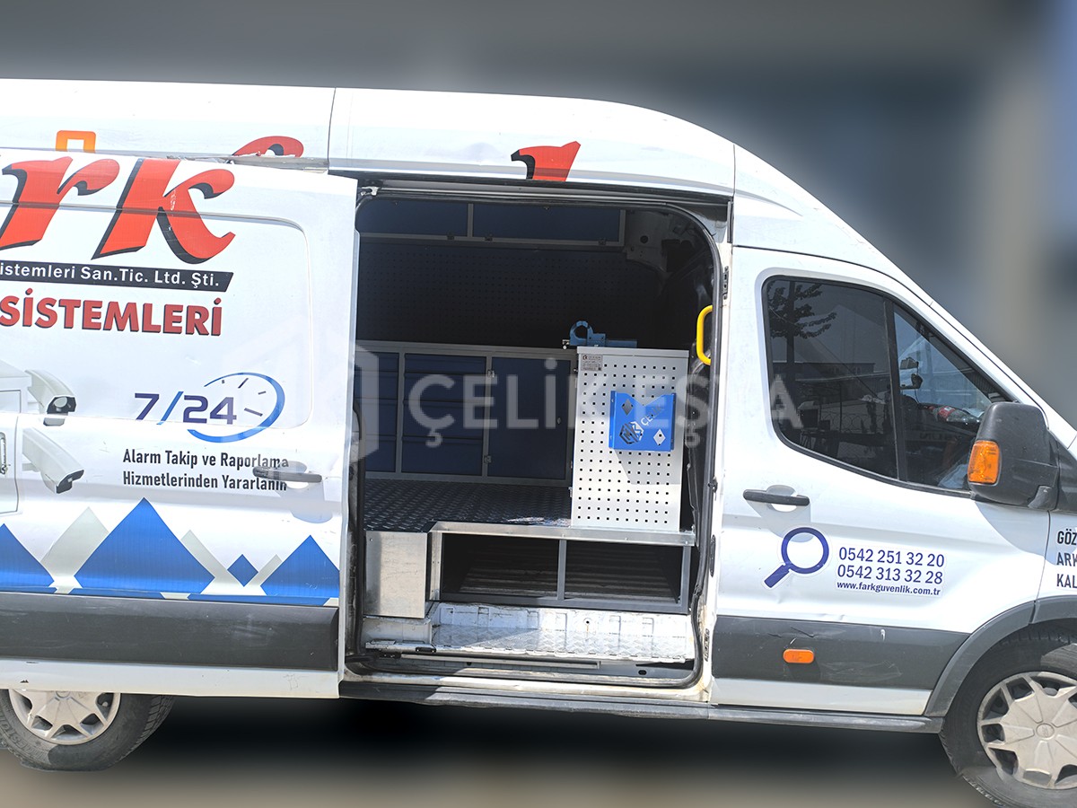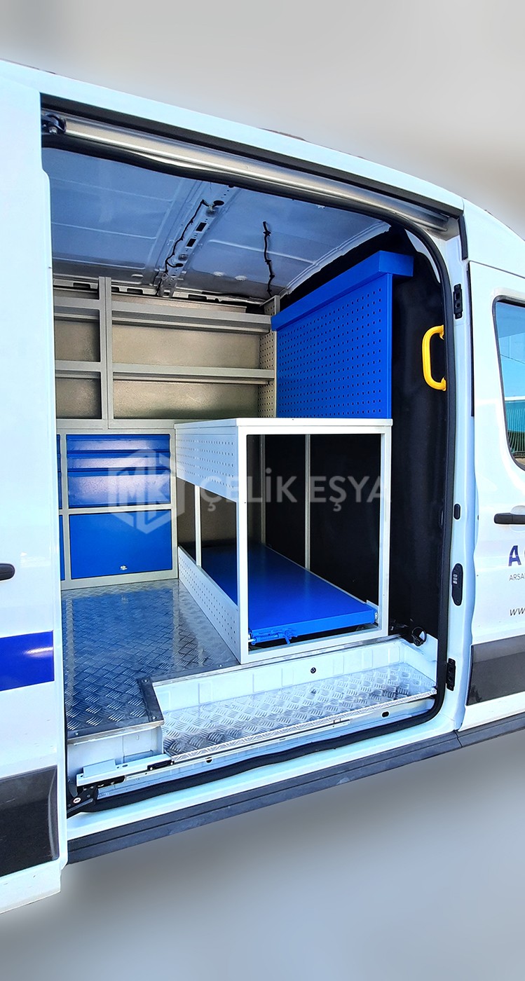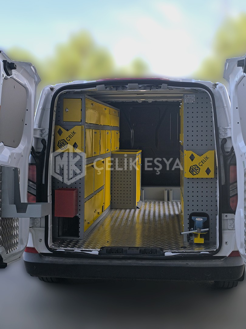 Araç İçi Dolap Sistemleri MK-425 Araç içi raf ve dolap sistemlerimiz, birçok farklı sektörde faaliyet gösteren firmaların ihtiyaçlarını göz önünde bulundurarak tasarlanıp üretilmektedir. Özellikle yerinde servis hizmeti veren firmaların bakım aracı ihtiyaçlarını karşılamaktadır. Bu tarz servis ve bakım araçlarının ihtiyaç duyduğu alet ve edevatların derli toplu muhafazası sağlanır. Ayrıca araç içinin fonksiyonel kullanımının yanında görsel olarak da zenginleştirir.