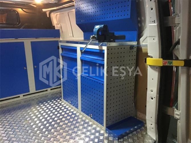 Araç içi raf ve dolap sistemlerimiz, birçok farklı sektörde faaliyet gösteren firmaların ihtiyaçlarını göz önünde bulundurarak tasarlanıp üretilmektedir. Özellikle yerinde servis hizmeti veren firmaların bakım aracı ihtiyaçlarını karşılamaktadır. Bu tarz servis ve bakım araçlarının ihtiyaç duyduğu alet ve edevatların derli toplu muhafazası sağlanır. Ayrıca araç içinin fonksiyonel kullanımının yanında görsel olarak da zenginleştirir.